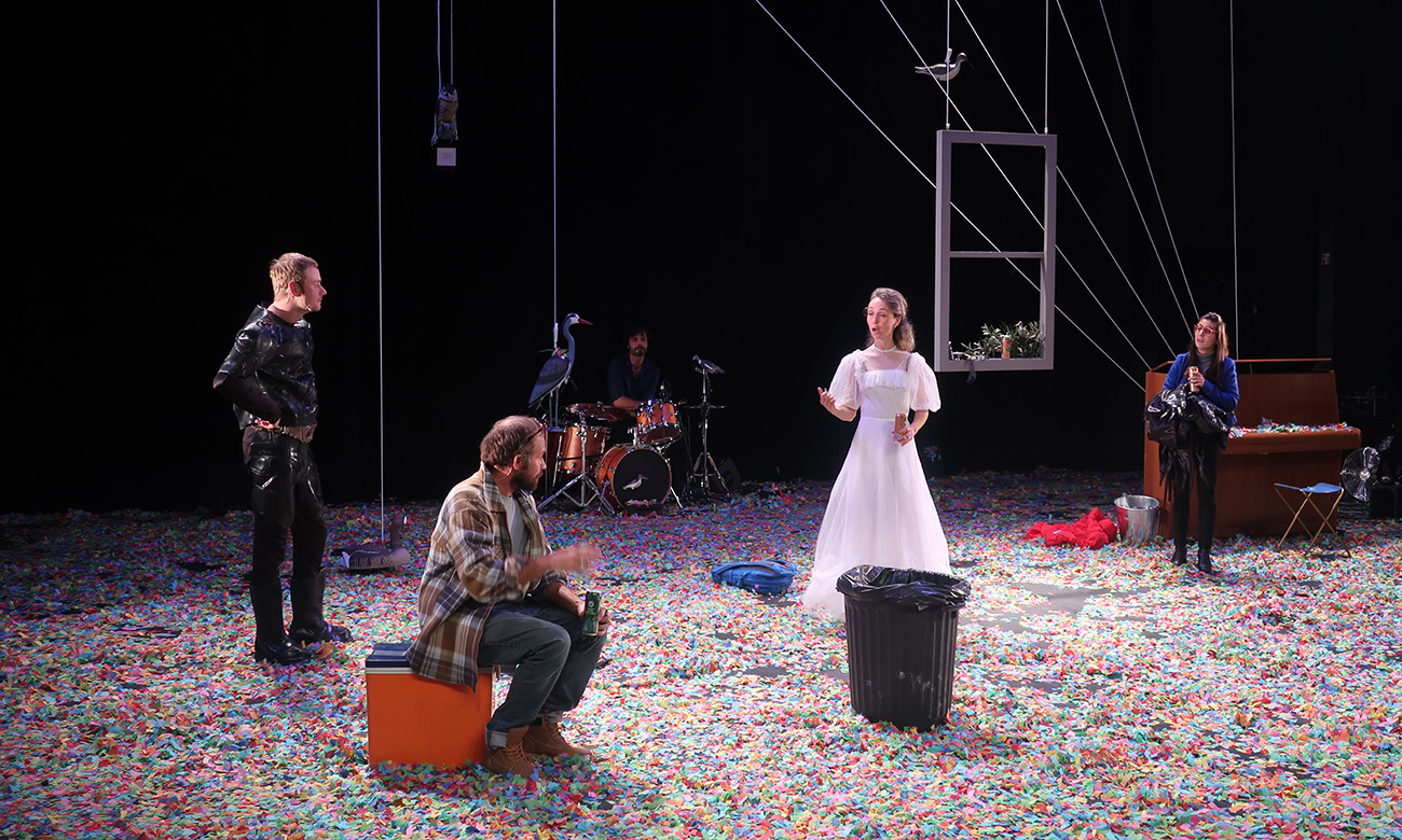 Texte Martin Legros • Mise en scène Sophie Lebrun et Martin Legros • Interprétation Inès Camesella, Sophie Lebrun, Baptiste Legros et Antonin Meyer-Esquerré (en alternance), Martin Legros, Nicolas Tritschler • Assistanat à la mise en scène Loreleï Vauclin • Création son, musique live et régie générale Nicolas Tritschler • Création son, régie son Pierre Blin • Lumière Audrey Quesnel • Scénographie Antoine Giard • Construction du décor et conseils Ateliers de la Comédie de Caen, Salvatore Stara, Anatole Badiali, Thomas de Broissia et Antoine Giard • Costumes Loona Piquery • Musique additionnelle Andjelka Zivkovic • Doublure en répétitions Louis Martin • Régie plateau Antoine Giard • Diffusion Fanny Landemaine • Administration et production Loreleï Vauclin, Noémie Cortebeeck • Remerciement Samuel Gallet, Chloé Giraud, Samuel Frin et Stéphanie Arsène, François Levalet, Olivier Lopez, Le Tapis Vert, Bonnaventure.